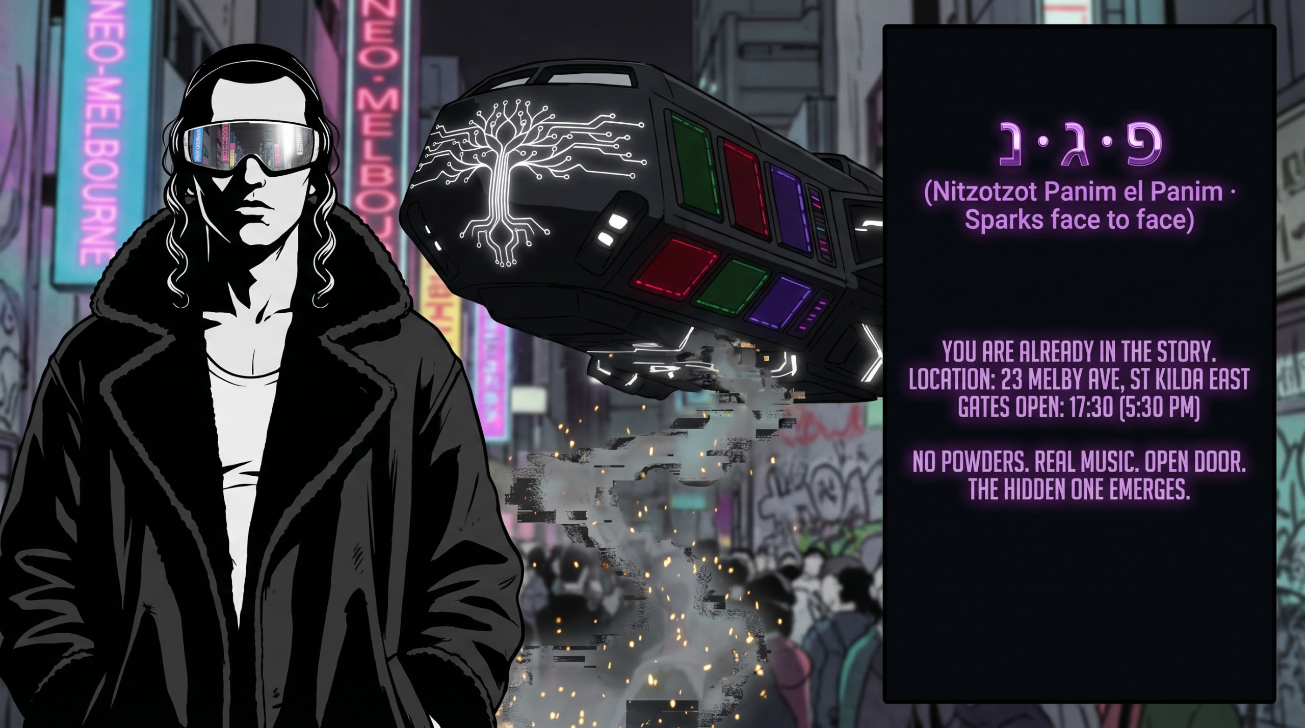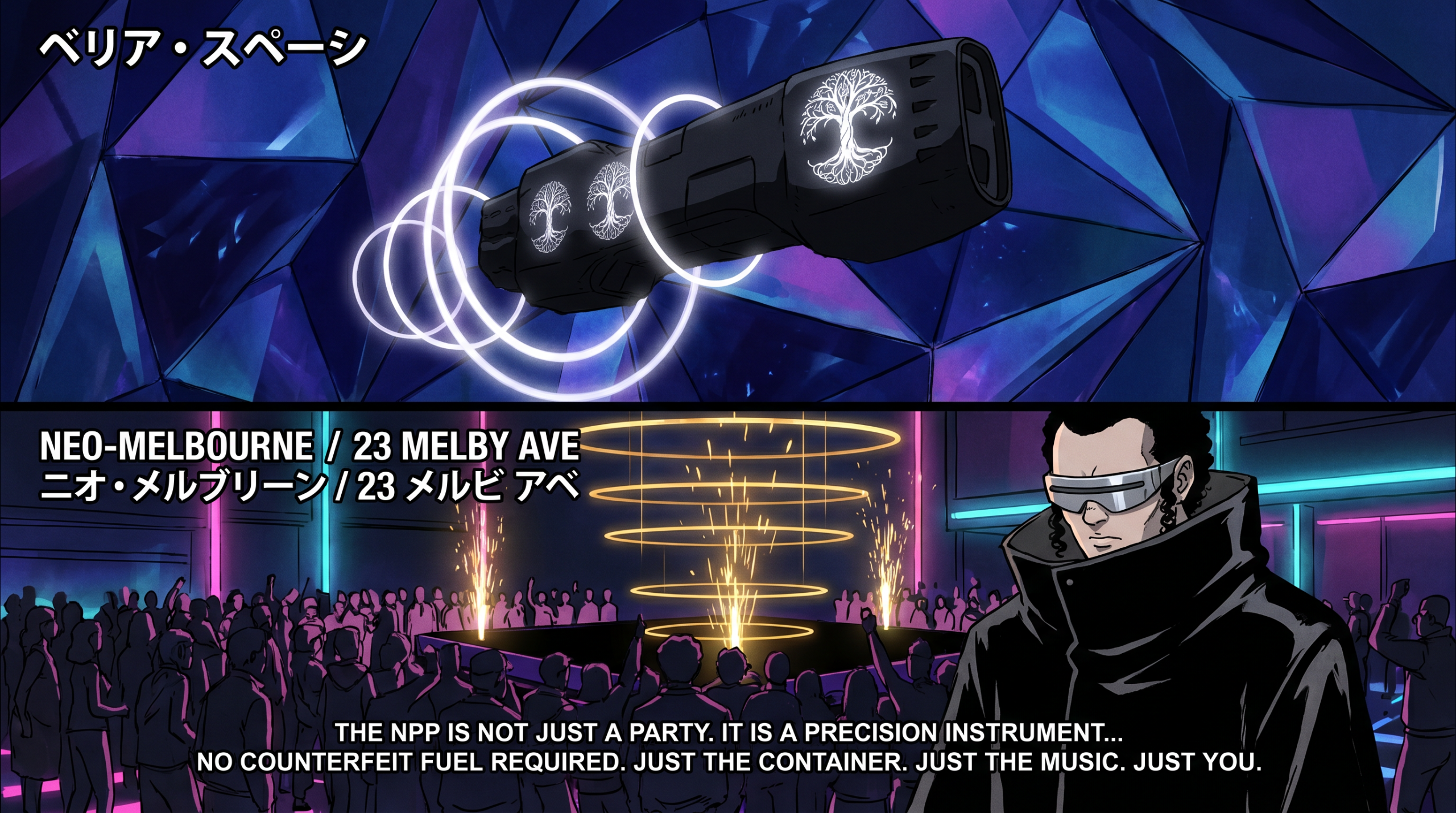 In Issue 3, the NPP will be formally registered as a movement within the D'Ni57er universe when the first non-Melbourne NPP event occurs — signalling that the technology has escaped its origin and is now self-replicating. This is designated: the Messianic prototype goes portable.